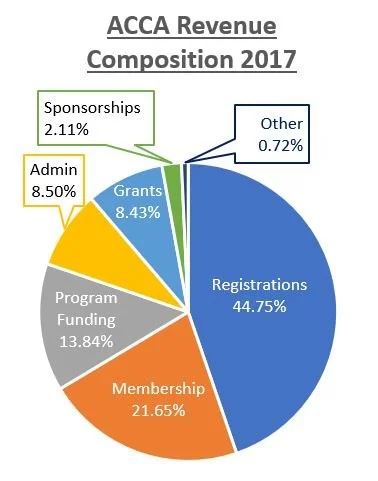Executive Director Michele Aasgard and Audit & Finance Chair Harvey Hagman were pleased to report on a financially sustainable, small operating surplus for 2017. In comparison to 2016, overall revenue has grown faster (+6.4%) than total expenditure (+3.8%). Registrations and Membership have seen little change over the year and therefore continue to account for a large part of revenue; however, the challenge to secure grants (-4.3%) and program funding (-4.5%) is evident as the Alberta economy continues to recover and evolve.